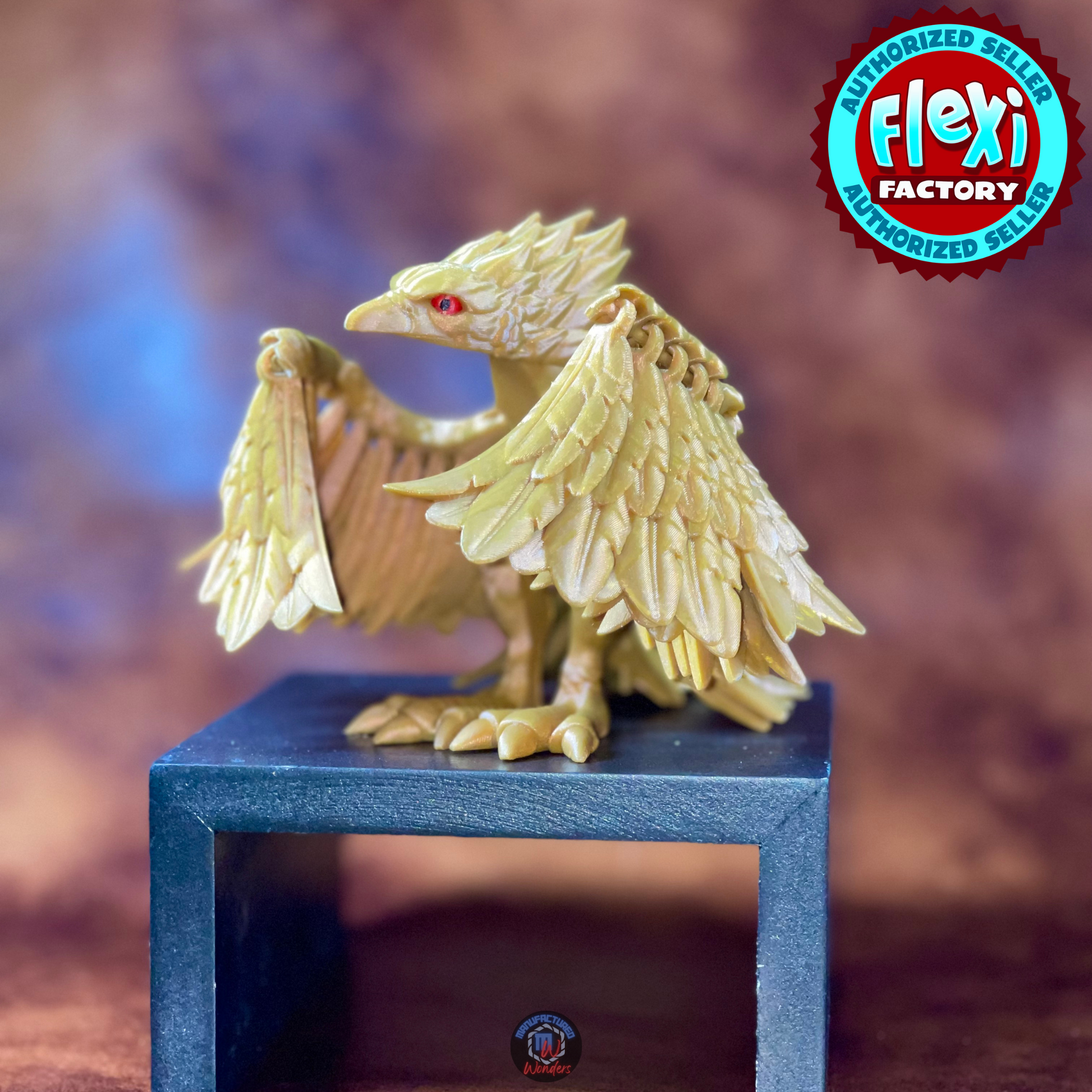 One of Flexi-Factory's grand designs! This 3d printed collectible Phoenix is a very articulate bird. Great fidget, lots of fun, and a wonderful collectible to customize just for you or to gift to someone you love!